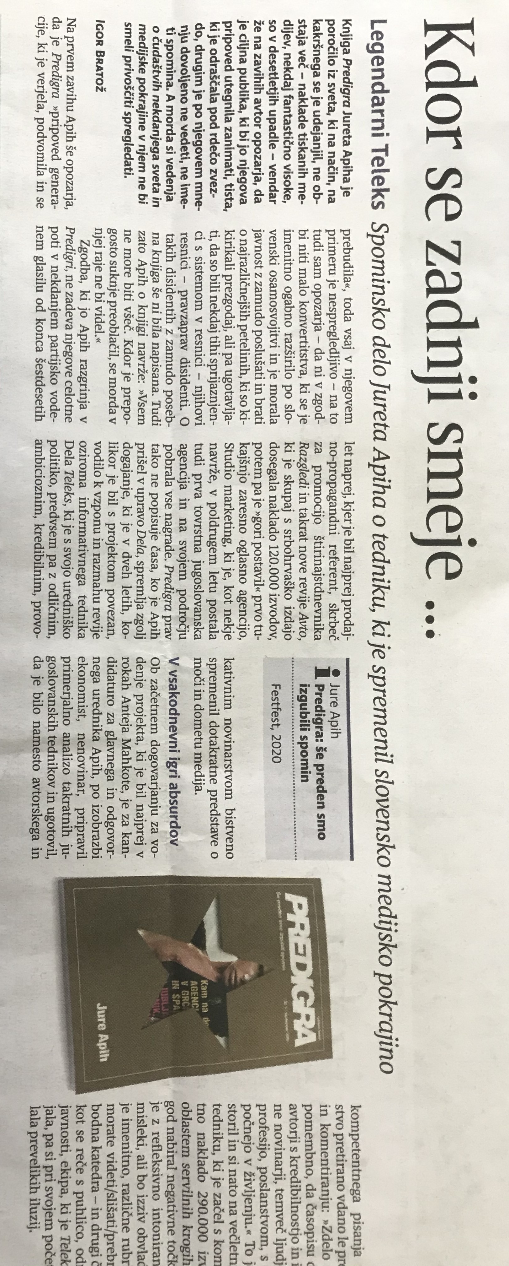 Legendarni Teleks Spominsko delo Jureta Apiha o tedniku, ki je spremenil slovensko medijsko pokrajino